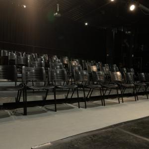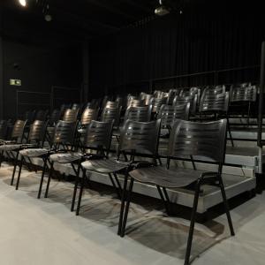 12 praticáveis 2 X 1 metro, alturas 0,20 / 0,40/ 0,60 / 0,80 (atualmente montado como plateia fixa, podendo ser utilizado em outras formas conforme necessidade)