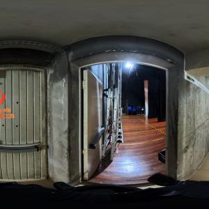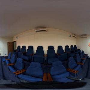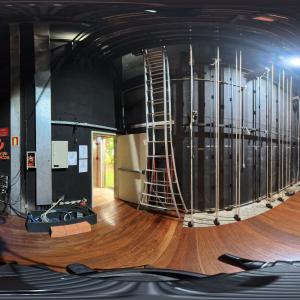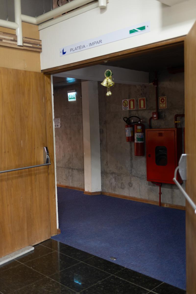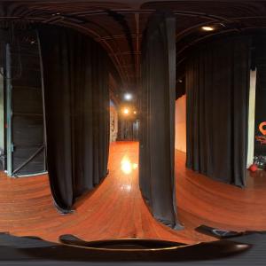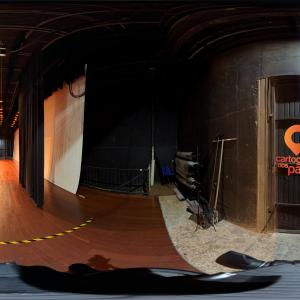 8 varas de cenário contrapesadas; possuem "pernas", rotunda e bambolinas, todas móveis.