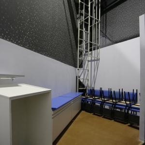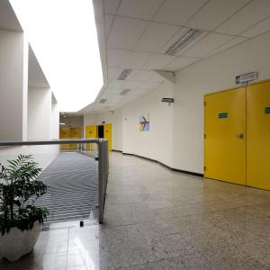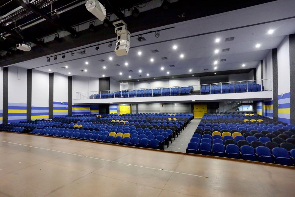 Idealizado com o propósito de acolher tanto a comunidade educativa quanto a comunidade externa, o Auditório possibilita o acesso para pessoas que possuem necessidades especiais, disponibilizando, por exemplo, elevadores e rampas para ingresso no local. A preocupação com a segurança, por sua vez, evidencia-se na ampla estrutura adotada para atender à legislação de padrões normativos - por meio de dispositivos como sistema de alarme de incêndio, sistema de hidrantes e saídas de emergência – em consonância com as especificações indicadas no Plano de Prevenção Contra Incêndio (PPCI).