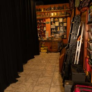 12 praticáveis 2 X 1 metro, alturas 0,20 / 0,40/ 0,60 / 0,80 (atualmente montado como plateia fixa, podendo ser utilizado em outras formas conforme necessidade)