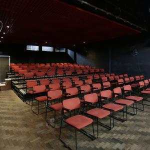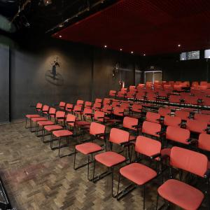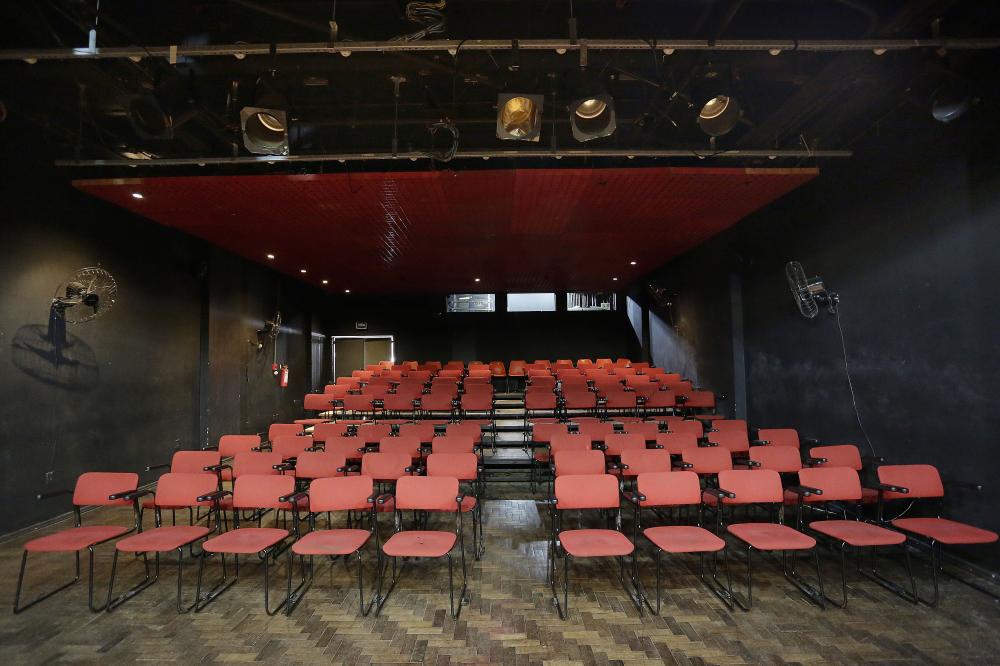Possui um camarim de aproximadamente 5 x 3 m que ocupa todo o fundo do palco.