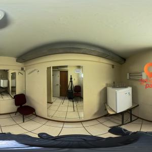 8 camarins de 9 metros quadrados cada, equipados com banheiro e chuveiro, com espelhos e 3 cadeiras em cada.