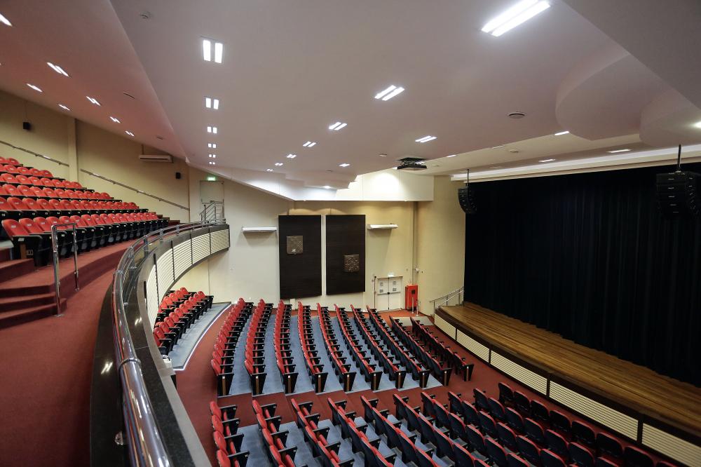 O Teatro Murialdo possui acomodações para receber confortavelmente 565 espectadores. Além disso, a Instituição conta com infraestrutura técnica, equipamentos de sonorização, iluminação cênica compatível para a realização de eventos nos mais diferentes formatos. O palco está habilitado a receber shows musicais, espetáculos de dança, peças teatrais e projeções cinematográficas, bem como atividades acadêmicas e cerimônias de formatura dos cursos de graduação.